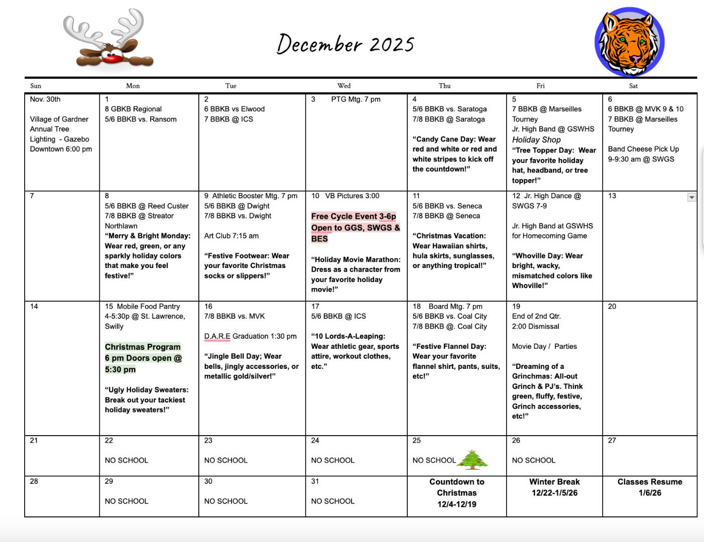 Lunch Menu/Monthly Calendar